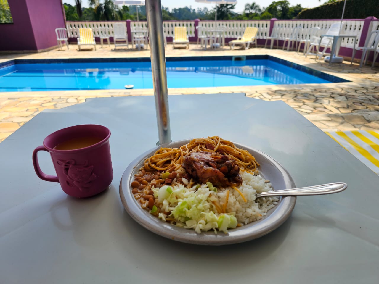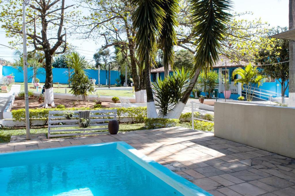 Ambientes equipados com piscina, academia, campo e quadra para esportes, refeitório, além de uma área ampla.